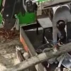 Eğilen elektrik direğini evine bağlamıştı, yıkılmak üzere olan direk kaldırıldı