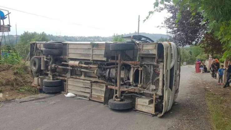 Samsun'da sürücüsünün el frenini çekmeyi unuttuğu midibüs hareket ederek devrildi. Fındık işçilerinin bulunduğu midibüsün devrildiği kazada 3 kişi yaralandı.