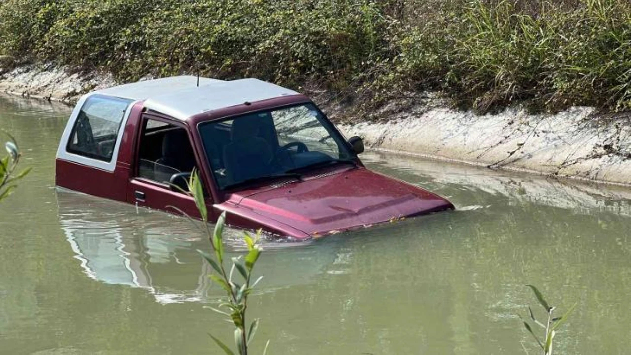 El frenini çekmeyi unuttuğu araç sulama kanalına düştü