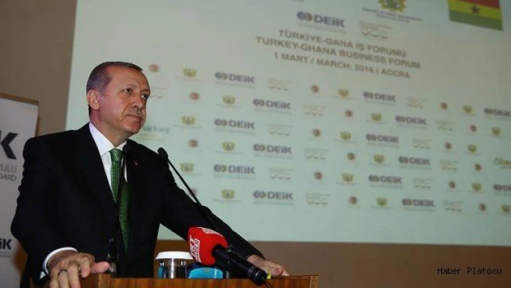 Cumhurbaşkanı Erdoğan, konuşmasına "Türk ve Ganalı iş adamlarıyla bir araya gelmekten büyük bir memnuniyet duyduğumu özellikle ifade ediyorum" diyerek başladı.