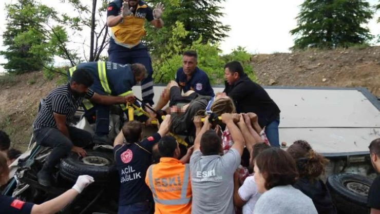 Eskişehir'de karavan ve otomobilin kafa kafaya çarpışması sonucu meydana gelen trafik kazasında 1'i ağır 5 kişi yaralandı. Karavanda sıkışan Fransız uyruklu 2 kişi itfaiye ve sağlık ekiplerinin yoğun uğraşları sonucunda kurtarıldı.