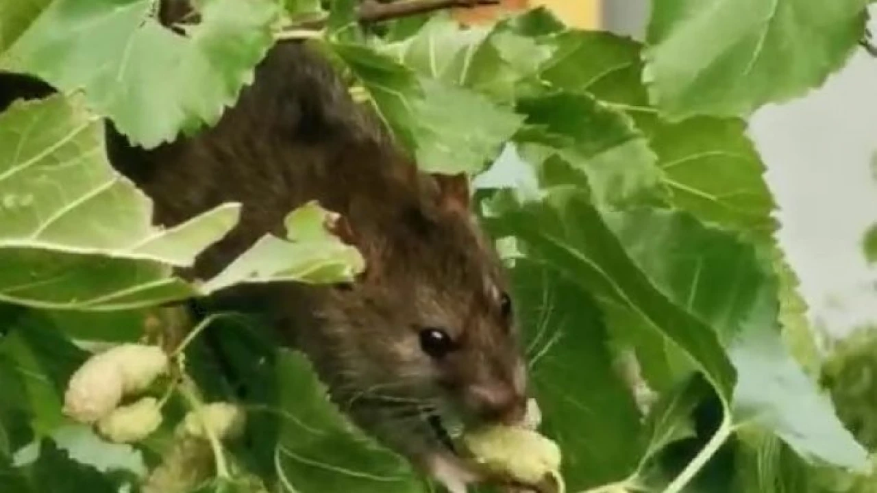 Artvin’in Borçka ilçesinde bir dut ağacının tepesinde dut yerken görülen fare görenleri şaşırttı.