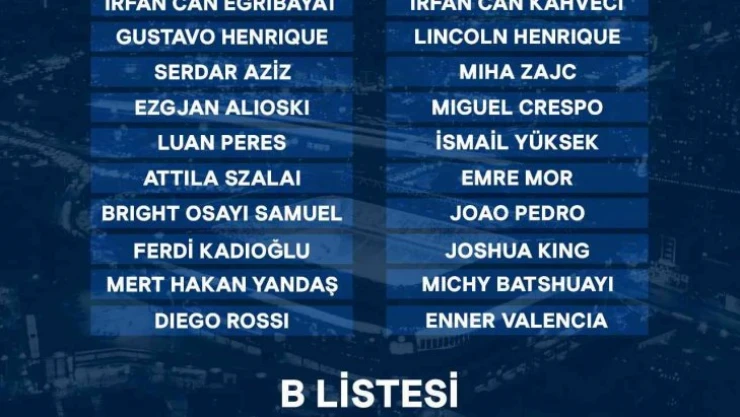 "Altay Bayındır, Ertuğrul Çetin, İrfan Can Eğribayat, Gustavo Henrique, Serdar aziz, Ezgjan Alioski, Luan Peres, Attila Szalai, Willian Arao, Ferdi Kadıoğlu, Mert Hakan Yandaş, Diego Rossi, Arda Güler, Enner Valencia, Joshua King, İrfan Can Kahveci, Lincoln Henrique, Miha Zajc, Miguel Crespo, İsmail Yüksek, Emre Mor, Joao Pedro, Osayi Samuel, Michy Batshuayi."