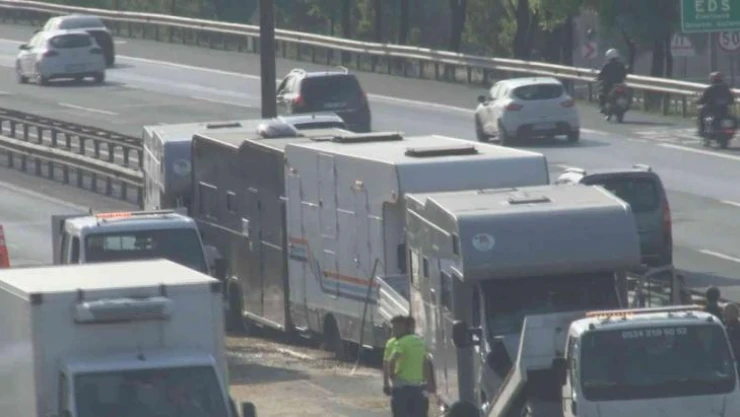 İstanbul Küçükçekmece Tem Otoyolu’nda aralarında film çekimine giden karavanların da olduğu 7 aracın karıştığı zincirleme trafik kazası meydana geldi. Kazada araçlar içinde bulunan 6 kişi hafif şekilde yaralandı.