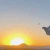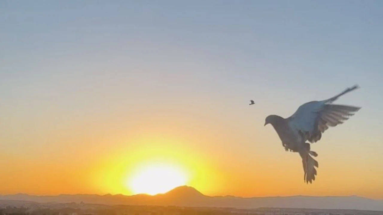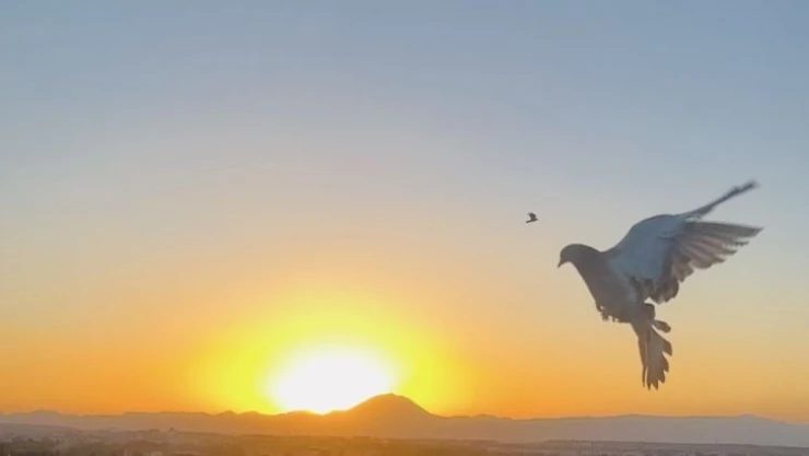 Ağrı’da kuş festivaline hazırlanan taklacı güvercinler gün batımı eşliğinde antrenman yapıyor.