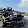 Gurbetçinin kullandığı otomobil tıra çarptı, lüks otomobil hurdaya döndü