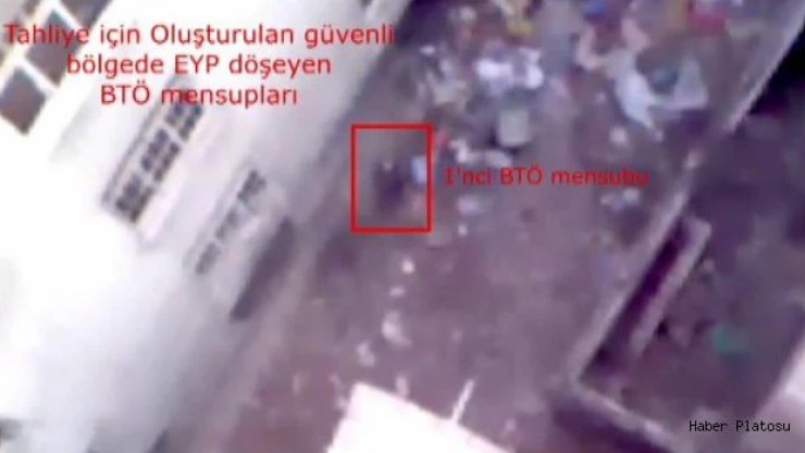 Görüntülerde, teröristlerden ikisinin evlerini terk etmek isteyen vatandaşları engellemek için koridora yakın bölgeye el yapımı patlayıcı yerleştirdiği, görüntü alınmasını engellemek için bir evi ateşe verdikleri görülüyor.