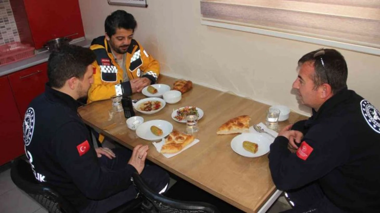 Erzurum Sağlık Müdürlüğüne bağlı 112 Acil Yardım Yakutiye 1 No’lu İstasyon çalışanları, Ramazan ayında da hayat kurtarmaya devam ediyor. İftar vaktine dakikalar kala evde pişirilen yemeklerle sofralarını kuran 112 Acil Sağlık ekipleri, ezanın okunması ile birlikte oruçlarını açıyor. Ancak telsizden yeni bir vaka anonsu yapıldığında ekipler, oruçlarını açamadan hayat kurtarmak için yeni bir yarışın içerisine giriyor. Sağlık çalışanları, gelen ihbarlara yetişmek ve insanların hayatını kurtarabilmek için bazen sahursuz oruç tutmak, bazen de iftar sofralarını yarım bırakmak zorunda kalıyor.