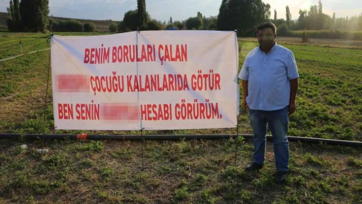 Afyonkarahisar'ın İhsaniye ilçesinde bir çiftçi, tarlasından sulama borularının çalınmasına astığı pankartla tepki gösterdi. Pankarta yazılanlar ise çiftçisinin adeta öfkesinin dışa vurmuş halini yansıttı.