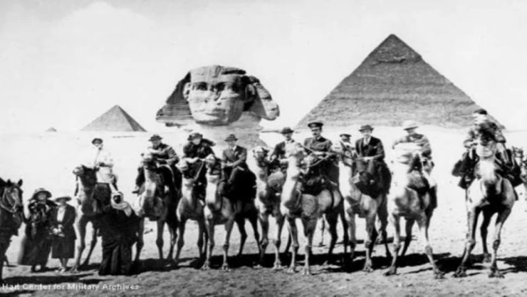 Benzer biçimde T.E. Lawrence’ın “arkeoloji” gerekçesiyle çıktığı yolculukların, Mezopotamya’dan Mısır’a uzanan stratejik güzergâhların haritalandırılmasına hizmet ettiği belirtiliyor. Kitapta aktarılan sembolik örneklerden biri, 1921’de Winston Churchill’in Giza Piramitleri ziyareti. Bell ve Lawrence’ın aynı heyette yer alması, arkeoloji ile diplomasi ve istihbarat arasındaki yakın ilişkiyi gösteriyor.
