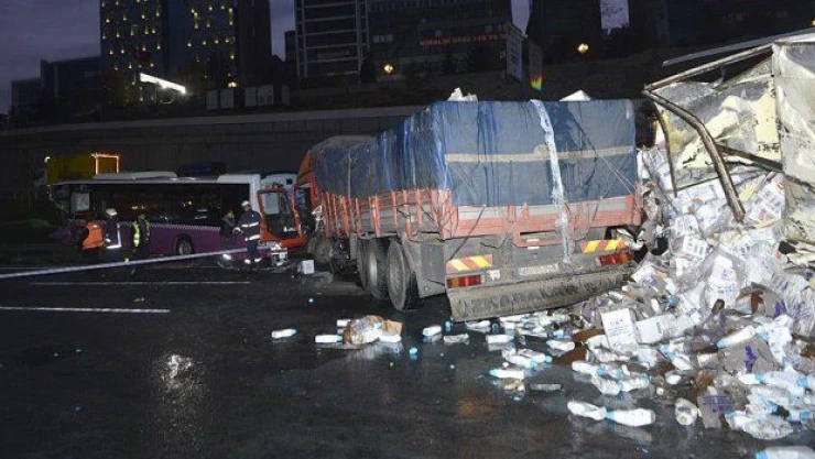 Edinilen bilgiye göre, TEM Otoyolu Maslak Köprülü Kavşağı yakınında Edirne yönünde seyreden Hami Coşkun'un kullandığı 18 AP 991 plakalı kamyona, 42 EZ 310 plakalı kamyon arkadan çarptı.
