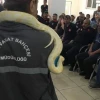 Kayseri'de itfaiye erlerine hayvanat bahçesindeki yılanlarla 'yılan yakalama' eğitimi verildi.