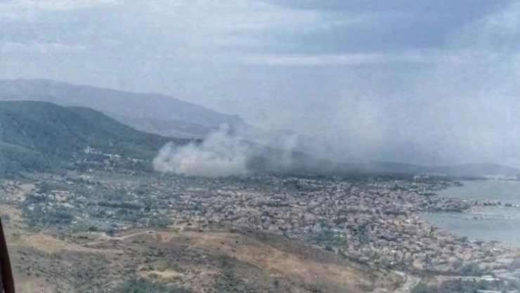 İzmir'in Urla ilçesinde ağaçlık alanda çıkan yangına havadan ve karadan müdahale başladı. Yerleşim yerlerine de yakın olan bölgedeki alevleri kontrol altına alma çalışmaları sürüyor.