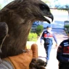 Mersin'de jandarma ekipleri, görev dönüşü yolda yaralı buldukları şahine sahip çıktı, tedavisi için hayvan doğa koruma ekiplerine ulaştırıldı.
