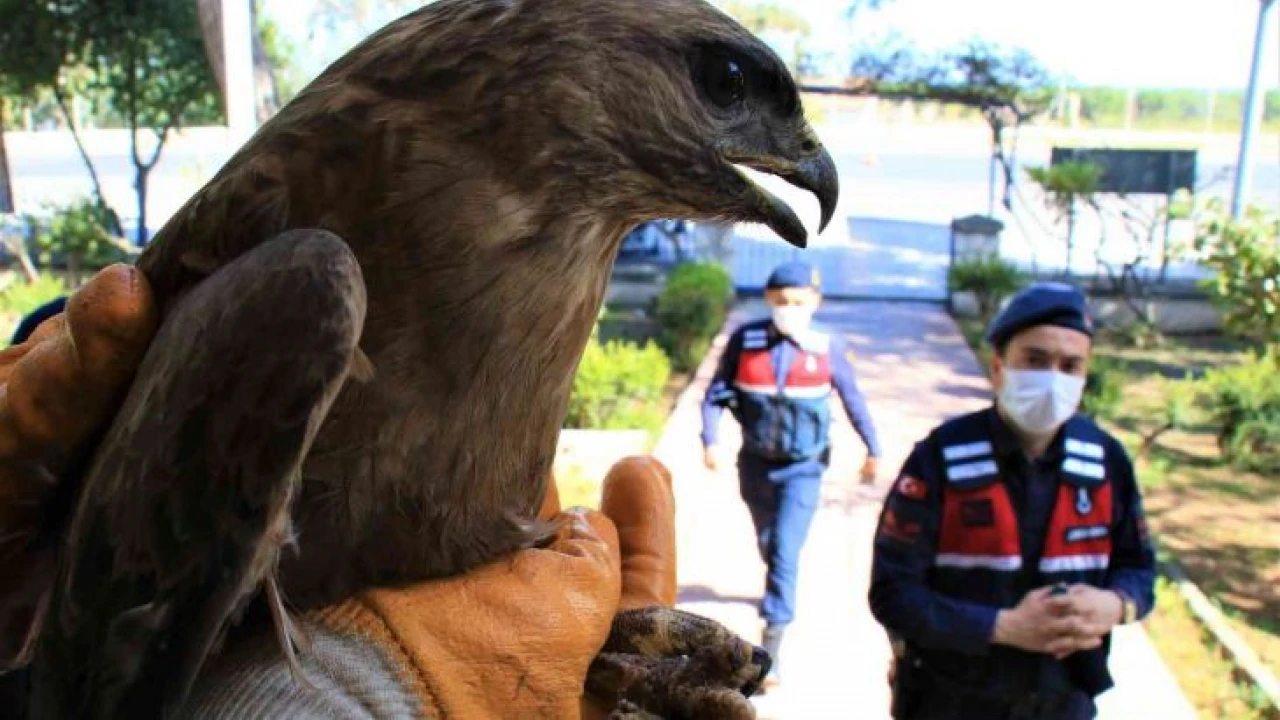 Mersin’de jandarma ekipleri, görev dönüşü yolda yaralı buldukları şahine sahip çıktı, tedavisi için hayvan doğa koruma ekiplerine ulaştırıldı.