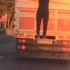 Kamyon kasasının kapağına tutunarak gitti, görenlerin yüreği ağzına geldi
