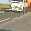 Çorum’da seyir halindeki bir kamyondaki balyalar alevlere teslim oldu. Seyir halindeyken yanan kamyondaki balyalar vatandaşlar tarafından görüntülendi.