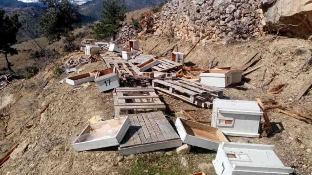 Karaman'da ayıların saldırısına uğrayan arı kovanları parçalanarak kullanılamaz hale geldi.