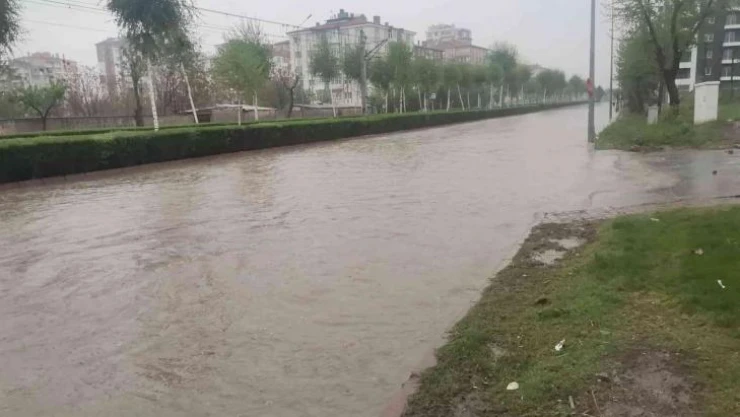 Kayseri'de öğle saatlerinden itibaren başlayan sağanak yağış hayatı olumsuz etkiledi.