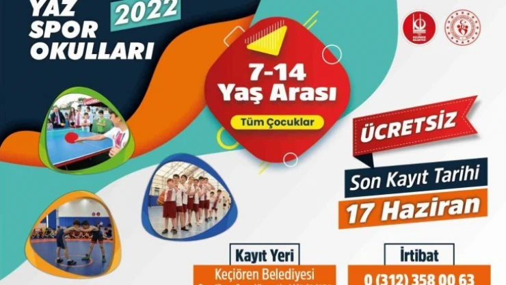Keçiören Belediyesi tarafından düzenlenen ücretsiz 2022 Yaz Spor Okulları için kayıtlar başladı. Basketbol, voleybol, hentbol, kick boks, judo, tekvando, tenis, kaykay, atletizm, güreş, halter, badminton, buz pateni, oryantiring, masa tenisi, dart, satranç, akıl zeka oyunları, okçuluk, ragbi ve bilek güreşi olmak üzere 21 farklı branşta eğitim verilecek olan Yaz Spor Okulları'ndan 7-14 yaş arası tüm çocuklar faydalanabilecek. 17 Haziran 2022 tarihine kadar devam edecek başvurular Keçiören Belediyesi Gençlik ve Spor Hizmetleri Müdürlüğü'ne yapılacak. Başvuru formuna ise belediyenin kurumsal web sitesinden ulaşılabilecek. Detaylı bilgi almak isteyen vatandaşlar ise 0312 358 00 63 nolu telefonla merak ettikleri sorulara yanıt bulacak.