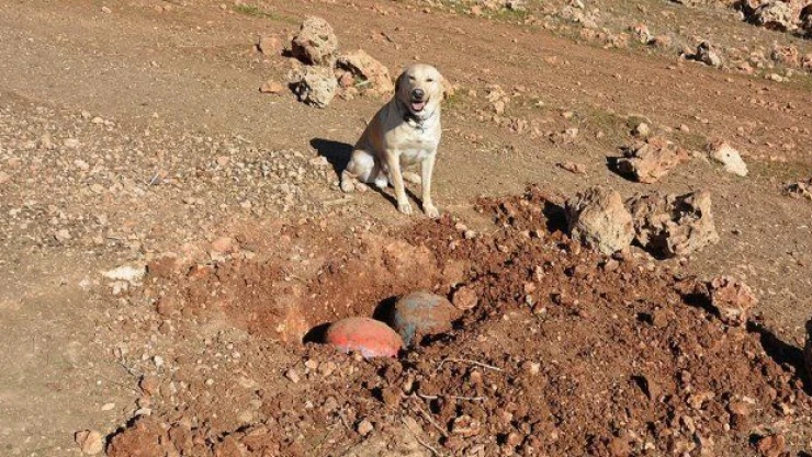 "Elma" adlı köpeğin yerini tespit ettiği iki büyük tüpün içine yerleştirilen yaklaşık 100 kilogram patlayıcı bulundu.