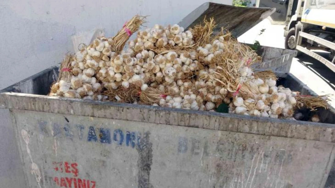 Kilolarca Taşköprü sarımsağını çöp konteynerine attılar
