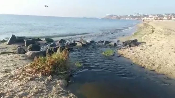 Kınıklı Deresinden Marmara Denizine simsiyah akan pis sular böyle görüntülendi