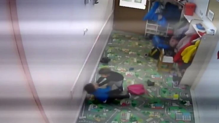Kreşte küçük çocuğun darp edildiği anlar kamerada