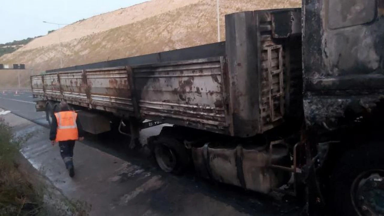 Kocaeli'nin Dilovası ilçesi Kuzey Marmara Otoyolu'nda seyir halindeki tır alev alev yandı.