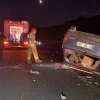 Kuzey Marmara Otoyolu'nda takla atan otomobil metrelerce sürüklendi: 2 yaralı