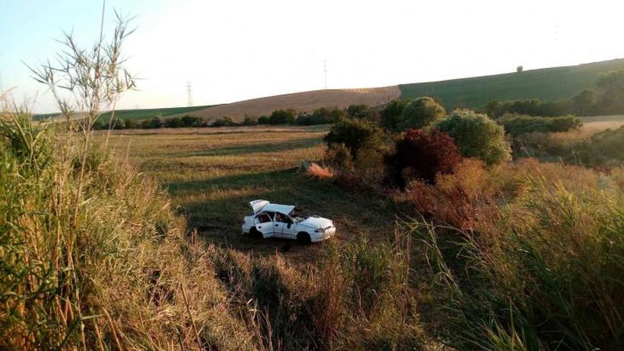 Lastiği patlayan otomobil metrelerce yüksekten tarlaya uçtu, emniyet kemeri hayat kurtardı
