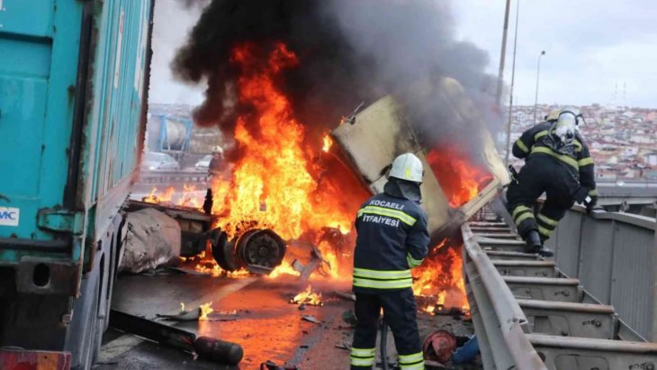 Kaza sonrası 34 UB 5031 plakalı tırın sürücüsü kabini alev aldı. Yangın kısa sürede büyürken kaza yerine itfaiye, sağlık ve polis ekipleri sevk edildi. Alev alev yanan tırdan sürücü Uğur Kara yaralı olarak kurtuldu. TEM otoyolunda ise yangın sebebiyle uzun araç kuyrukları oluştu. Yangın Kocaeli Büyükşehir Belediyesi itfaiye ekipleri tarafından kısa süren çalışma ile kontrol altına alındı. Yaralı sürücü olay yerine sevk edilen ambulans ile hastaneye sevk edildi.