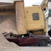 Sivas’ta kayan mıcır yüklü kamyon otomobilin üzerine devrildi.