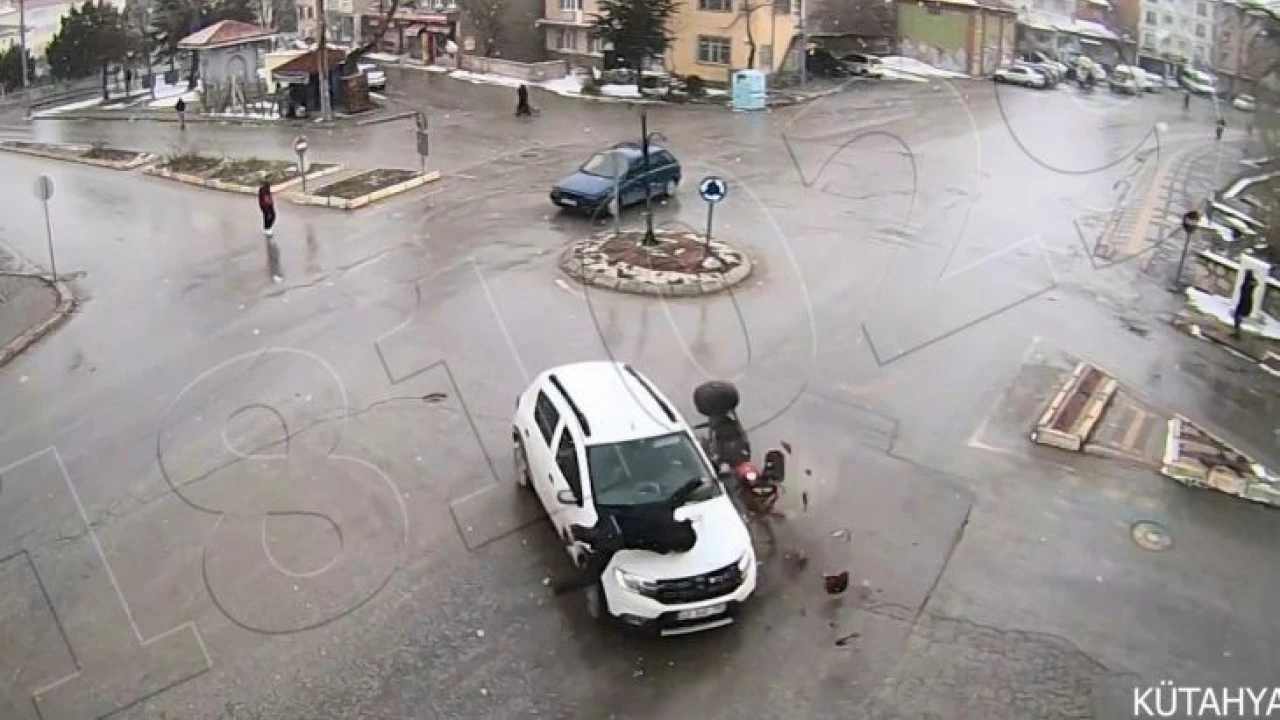 Kütahya merkez Gaybiefendi Mahallesi Bekir Avlupınar Caddesi üzerinde kavşaktan dönmekte olan otomobile motosikletli kurye çarptı. Kurye çarpmanın ektisi ile metrelerce ileri savruldu. Kaza anı kameralar tarafından saniye saniye kaydedilirken, yaralı kuryenin hastaneye kaldırıldığı öğrenildi.