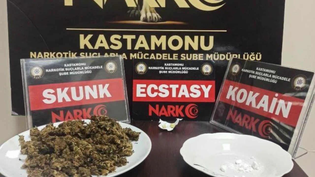 Edinilen bilgiye göre, Kastamonu İl Emniyet Müdürlüğü Narkotik Suçlarla Mücadele Şube Müdürlüğü ekiplerince, 17 Haziran günü iki şahsın yapılan üst ve oto aramalarında 2 adet Extacy, 2.14 gram taş kokain, 97.57 gram gelen Skunk maddeleri ele geçirildi. Şahıslar gözaltına alınarak adli mercilere sevk edildi.
