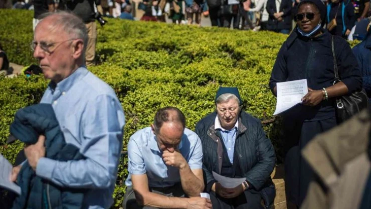 Fransa'nın başkenti Paris'teki Notre Dame Katedrali'nin önünde bir araya gelen yüzlerce Katolik, 'Kutsal Cuma' törenine katılarak dualar etti.