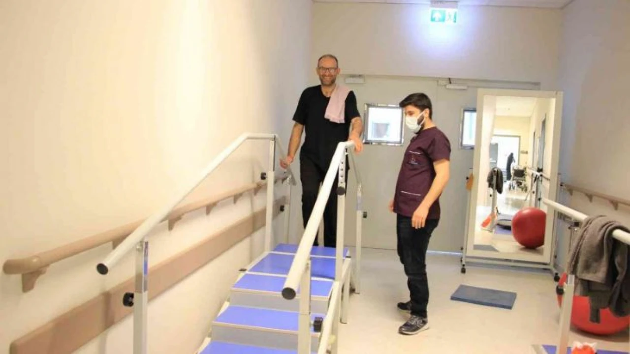 Yüksekten düşme nedeniyle omurgada gelişen kırık sonucu yürüme yetisini kaybeden 45 yaşındaki hasta, Elazığ'da fizik tedaviyle sağlığına kavuşarak tekrar yürümeye başladı.