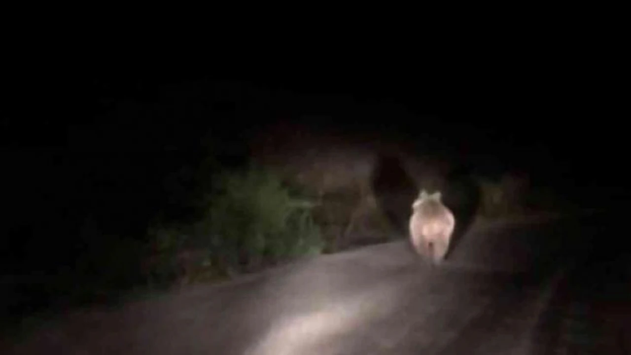 Sivas'ın Gemerek ilçesinde yaşayan iki arkadaş önlerine çıkan ayıyı araçla kovaladı, o anlar cep telefonu kamerasına yansıdı
