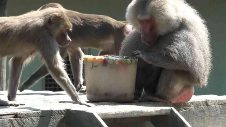 Bakıcıların ellerinden buzlu karpuz ve kavun yiyen tapirler, serin serin karınlarını doyurmanın keyfine vardı. En şanslılar ise, sürekli suyun içinde olmaktan keyif duyan penguenler oldu. Bakıcısının elinden soğuk balıkları kapan, soluğu suyun içinde aldı. Çeşitli meyvelerden oluşan buzlu kokteyler için ise bir biriyle yarışan maymunlar, çocukların ilgi odağı oldu.