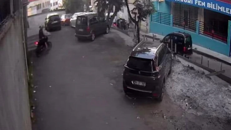 Güvenlik kamerasına yansıyan görüntülerde kasklı hırsız caddeden iş yerinin bulunduğu sokağa giriyor. Park halindeki motorun yanına gelen hırsız, etrafına dikkatlice baktıktan sonra motoru çalıştırıyor. Sokaktan çıkan hırsız, caddeye bağlanarak kaçıyor.