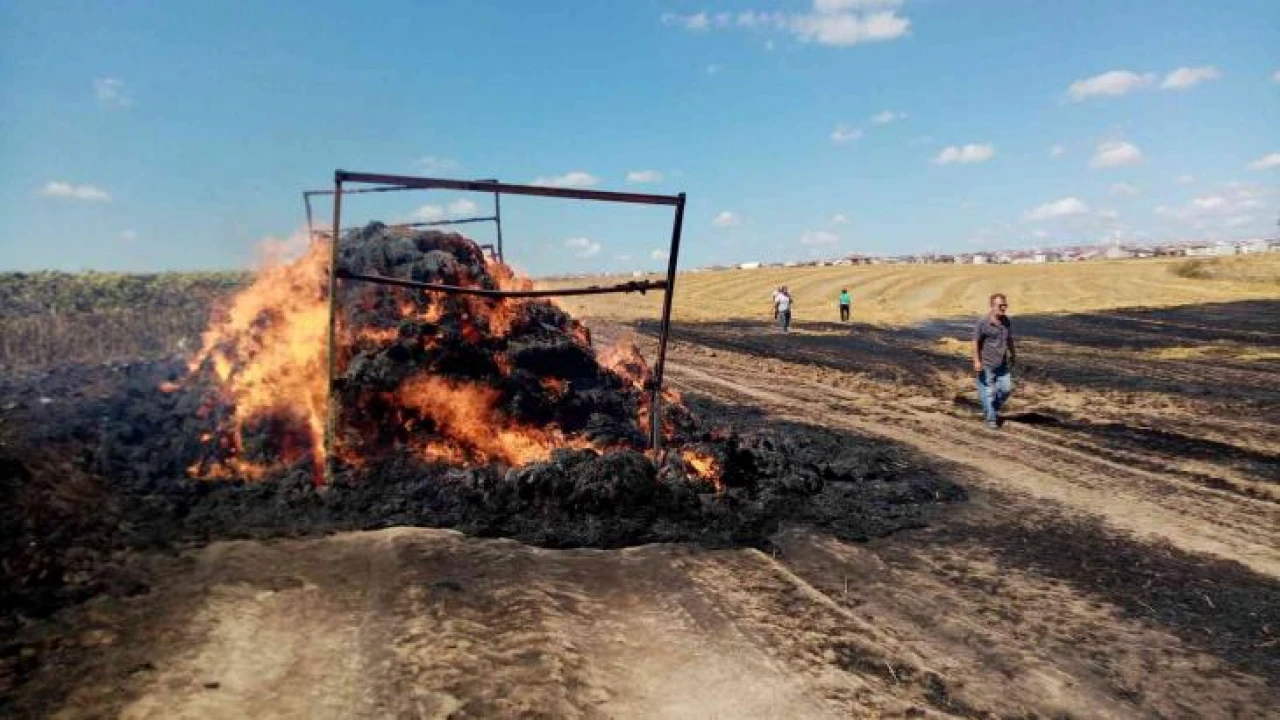 Tekirdağ Çorlu'da römorkta yüklü balyalardan çıkan yangın tarlaya sıçradı. Yangında 20 dönüm biçilmemiş buğday tarlasının yanı sıra traktör römorku, 200 dönüm anız, saman balyaları ve ağaçlık alan küle döndü.