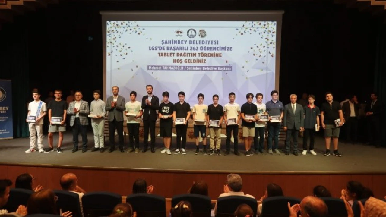 Gaziantep Şahinbey Belediye Başkanı Mehmet Tahmazoğlu, LGS’de derece yaparak yüzde 1’lik dilime giren 262 öğrenciye tablet hediye etti.