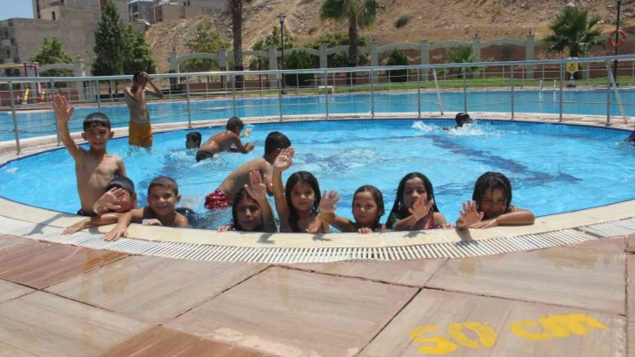 Türkiye’nin en sıcak kentlerinin başında gelen Şanlıurfa’da sıcak havadan bunalanlar ücretsiz havuzlara akın etti.