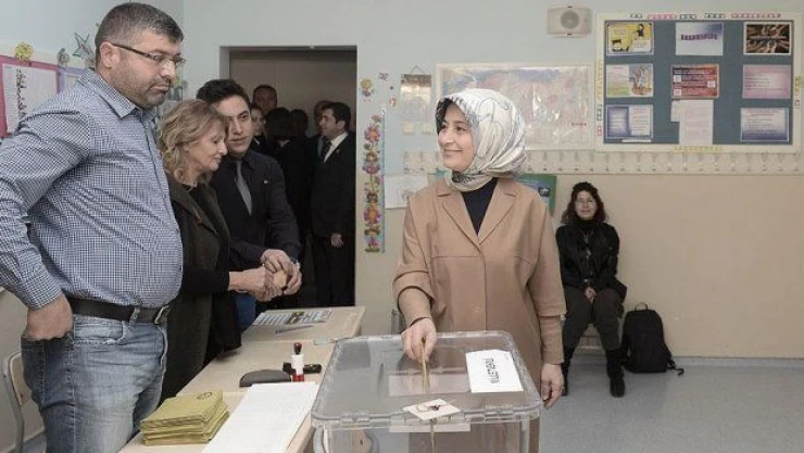 Başbakan Ahmet Davutoğlu'nun eşi Sare Davutoğlu, milletvekili genel seçimi için oyunu Çankaya İlkokulunda kullandı.