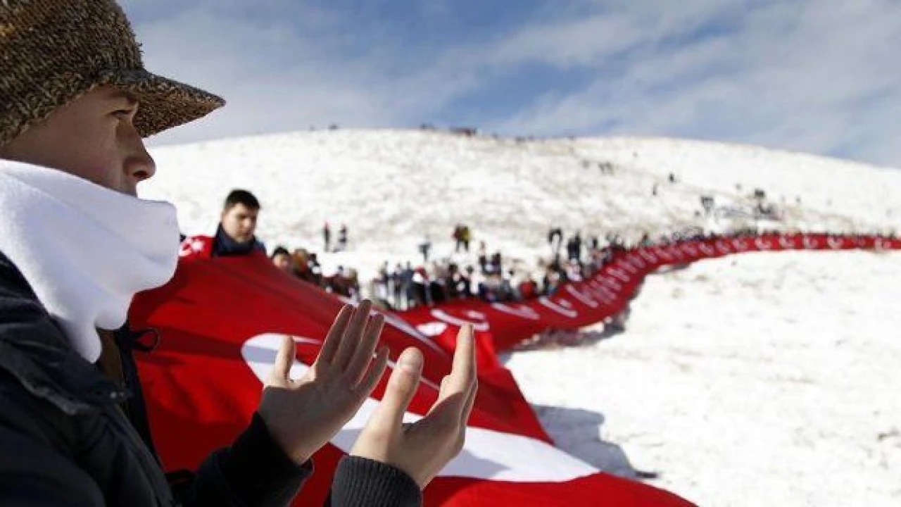 Malatya'daki anma etkinlikleri kapsamında bir araya gelen vatandaşlar ellerinde Türk bayraklarıyla Beydağı eteklerindeki karlı yolda yaklaşık 3 kilometre yürüdü.