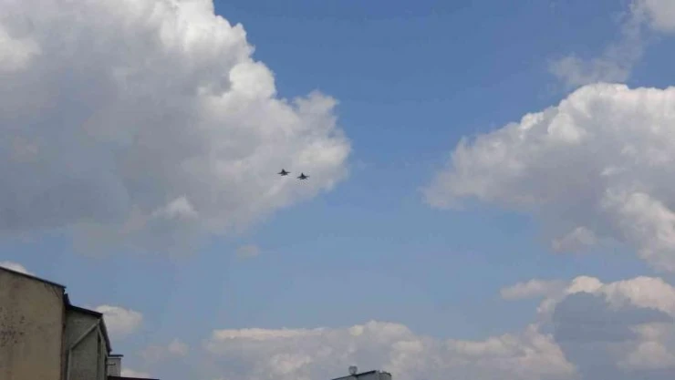 Ses hızını aşan savaş uçakları, Kastamonu semalarında bir süre uçuş yaptıktan sonra tekrar üstlerine döndü.