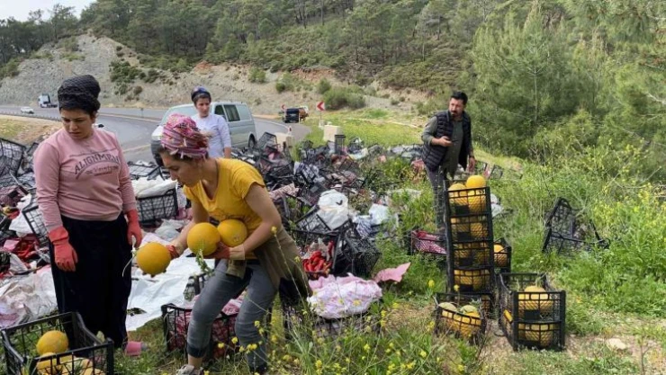 Antalya'nın Kumluca ilçesine sebze yüklü kamyon yoldan çıkarak şarampolde yan yattı. Kaza esnasında kamyonda bulunan sebzeler ise etrafa saçıldı.