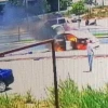 Diğer taraftan, yangın anı baştan sona işyerlerinin güvenlik kamerasına yansıdı. Görüntülerde, araçtan çevreyolundan caddeye girdiği anda dumanlar çıktığı, araçtakilerin panik halinde araçtan uzaklaştığı, işyerinden yangın tüpleriyle araca müdahalede bulunulduğu görüldü.