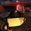 Kocaeli’de arkadan tıra çarpan sürücü, Smart marka otomobilin içerisinde sıkıştı. Sürücüyü sıkıştığı yerden itfaiye ekipleri kurtardı.