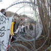 Sınır bölgesine yerleştirilen tel örgünün etrafında toplanan göstericiler, şarkılar eşliğinde tel örgüleri yeni yıl için süsleyerek, 'Tel örgü ölümdür', 'Tel örgü alışkanlıkları değiştirir' ve 'Avrupa tel örgü ile çevrildi' yazılı dövizler açtı.